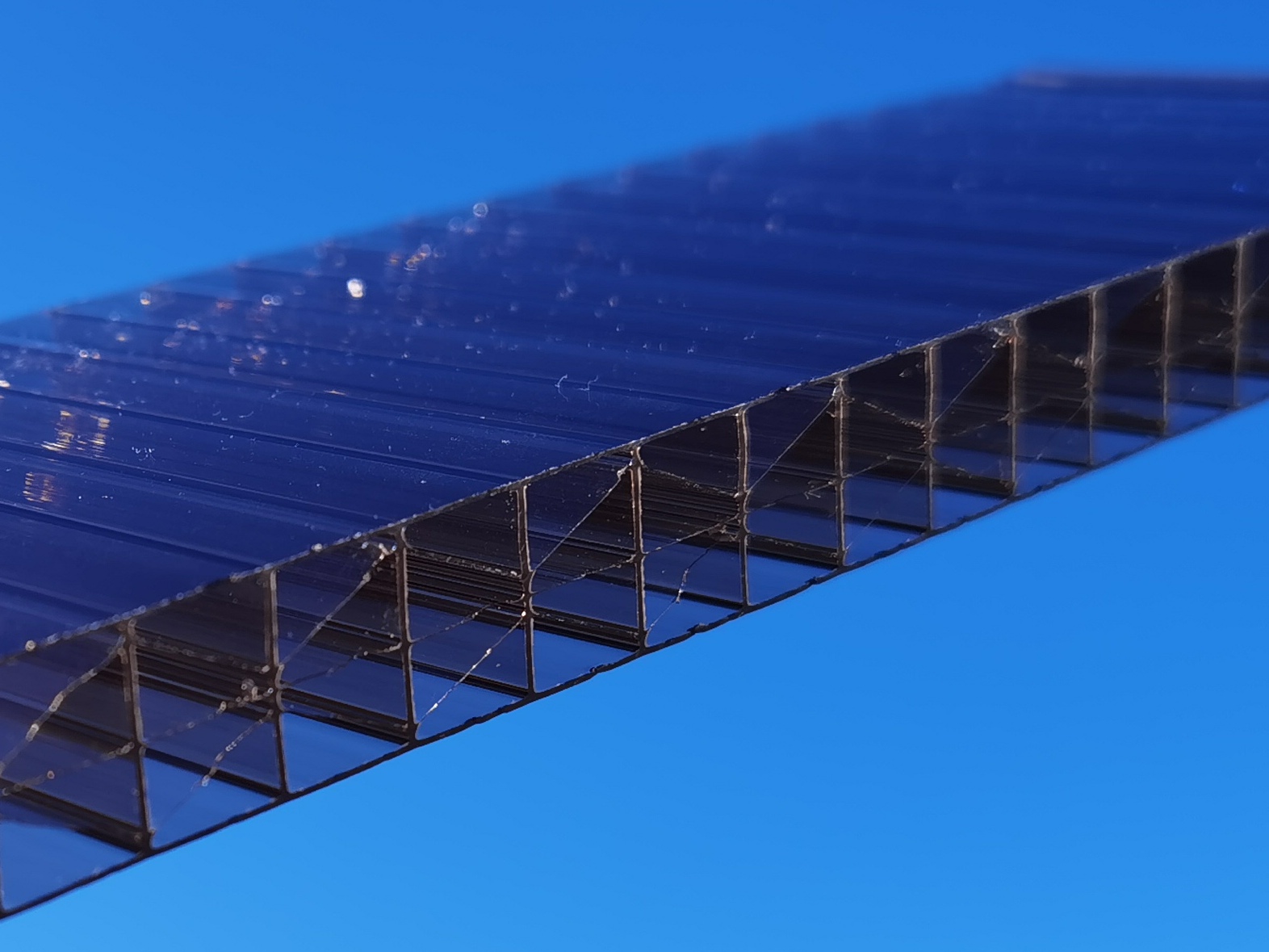Amennyiben Te szeretnéd hazavinni a polikarbonát lemezeket, mindig gondoskodj megfelelő fuvareszközről, mert a lemezeket nagyon könnyen el tudod törni szállítás közben! Ha nem tudod elszállítani a lemezeket, kérj ajánlatot fuvarra! A lemez védőfóliája nem UV álló! A lemezeket beépítés előtt tárold fedett helyen, vagy takard le, mert a védőfólia „rásül” a lemezre, amit később nem,- vagy csak nagyon nehezen tudsz majd eltávolítani! Ne tárold túlzottan meleg helyen sem, mert a kamrák ,- és a lemezek közt megrekedő meleg a lemezek deformálódásához vezethet!